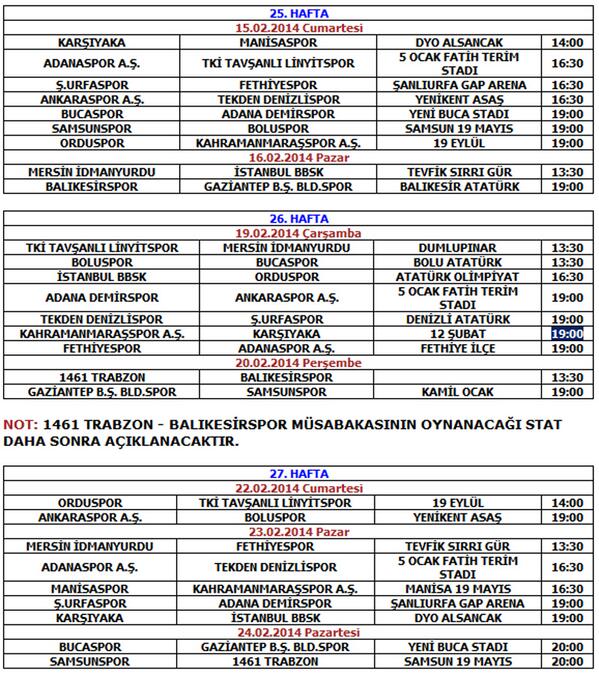 2013-2014 PTT 1.Lig 25-26 ve 27.Hafta Programı